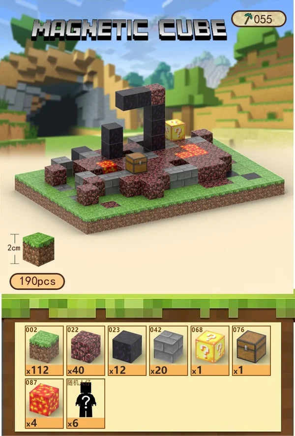 🧱 Indeholder 190 magnetiske byggeklodser🌀 Ødelagt Nether-portal-design🔥 Lava- og netherblokke🎁 Inkl. skattekiste og lucky block🧲 Stærke magneter – nem at samle og stabil konstruktion🎮 Minecraft-inspireret univers⚒️ Kompatibel med alle Magnetic Cube sæt