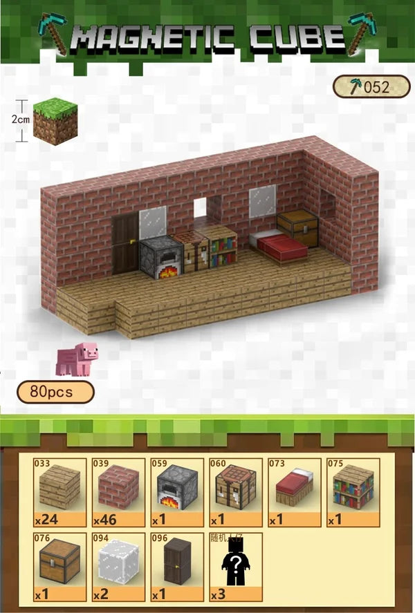 🧲 Magnetiske byggeklodser – Let at samle, ombygge og kombinere med andre sæt🏠 Minecraft-hus med detaljer – Indeholder ovn, seng, crafting table, bogreol, kister og meget mere👾 Figurer o mobs inkluderet – gør legen levende🎁 Gaveidé til Minecraft-fans – Ideel som gave til børn og fans af Minecraft-universet