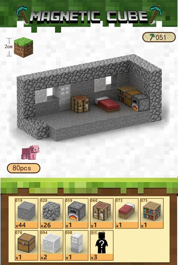 Minecraft Sten Hjem – Magnetiske byggeklodser (80 dele)Byg din helt egen base med dette detaljerede Minecraft Sten Hjem, lavet af magnetiske byggeklodser! Sættet indeholder alt, du skal bruge til at skabe et autentisk Minecraft-hus med vægge, møbler og figurer – perfekt til både leg og udstilling.