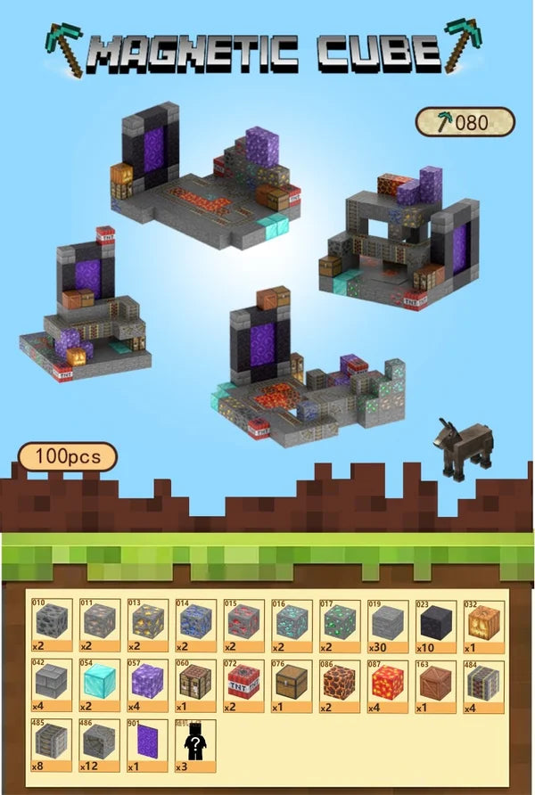 🧲 Magnetiske byggeklodser – Lette at samle, tage fra hinanden og bygge igen🌋 Autentisk Nether-miljø – Med malmblokke, lava, TNT, biblioteker, kister og geoder🌀 Flere Nether-portaler – Skab dine egne forbindelser mellem dimensionerne🐐 Figurer og mobs inkluderet – mystery-figur(er)🎮 Ideel til både leg og udstilling – Kombinér med andre sæt og udvid dit Minecraft-univers