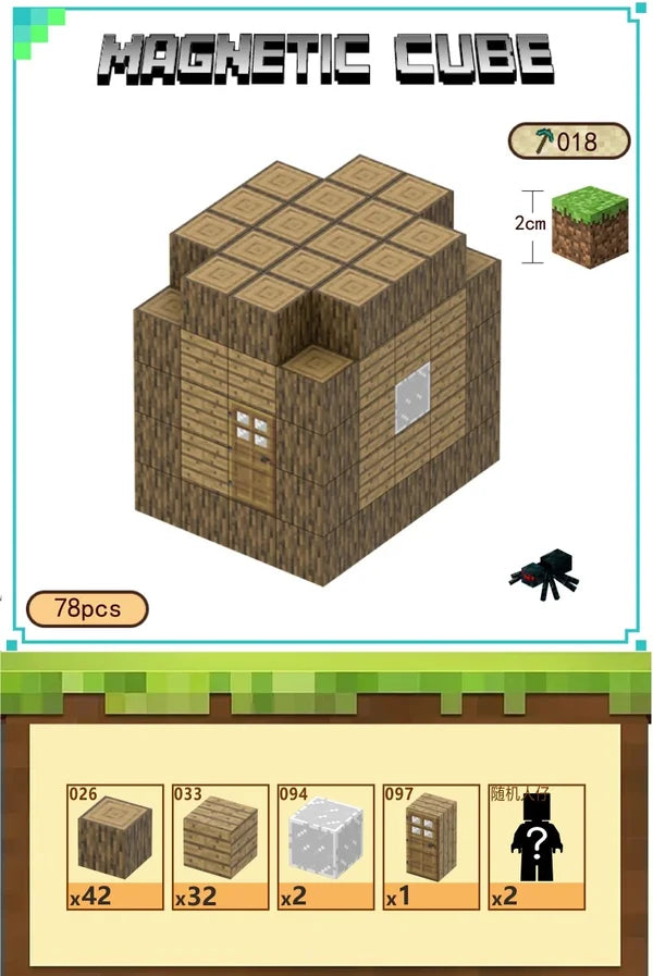 🏠 Kompakt og autentisk design – Et solidt og simpelt hus lavet af træblokke og detaljer som dør og glas🧲 Magnetiske klodser – Let at bygge og tage fra hinanden, perfekt til både leg og udstilling🌲 Fokus på træmateriale – Indeholder barkblokke, træplanker, dør og glasvinduer👾 Med karakterer og monstre – figurer for ekstra rollespil🎁 Fantastisk gaveidé – Et must-have sæt til alle Minecraft-entusiaster